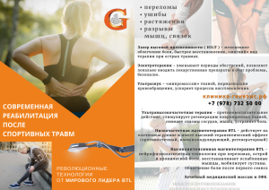 - Высокоинтенсивная магнитотерапия BTL — нейрофизиологическая технология при переломах, острой и хронической боли, восстанавливает ослабленные мышцы, мобилизует суставы.